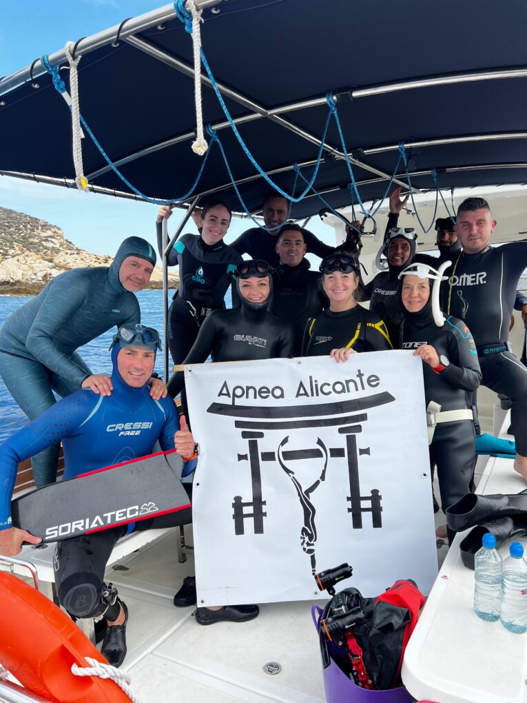R. Cuando quieres aprender algo tienes que hacerlo de la mano de los mejores. Si una persona quiere empezar le recomendaría que no lo hiciera de manera autodidacta. En la provincia de Alicante hay varios Clubs que están trabajando muy bien la apnea. Lo mejor sería que, si una persona está verdaderamente interesada en practicar la apnea, lo hiciera a través de un Club porque va a encontrar gente formada, federada y en el que se van a respetar todos los parámetros de seguridad y estándares de calidad. El Club Apnea Alicante se constituyó en 2020 para cubrir esas necesidades de manera formal en la ciudad. Para ponerse en contacto con nosotros lo mejor es a través del correo electrónico alicanteapnea@gmail.com y le ayudaremos en lo que necesite. Y por supuesto nos pueden encontrar también a través de las redes sociales @apnea_alicante