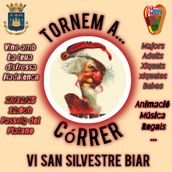 El espíritu deportivo y la diversión se unirán el 28 de diciembre con la celebración de la VI San Silvestre Biar. Esta carrera popular de disfraces tendrá lugar a las 12:00 horas en el Passeig del Plàtano.