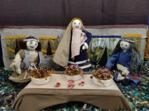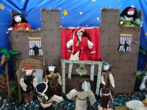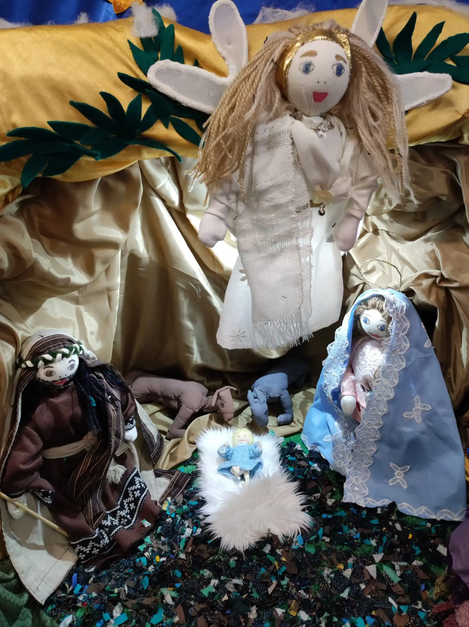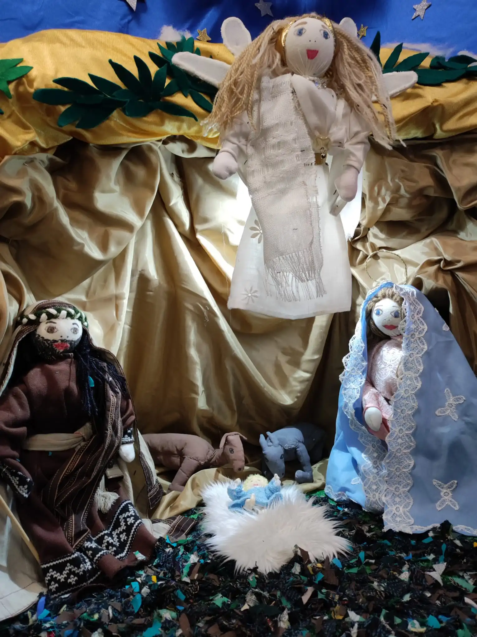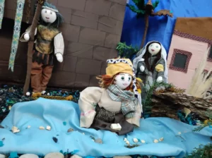 El Belén que os vamos a mostrar está hecho a mano, con trapos, hace 15 anos que se hizo, de mano de Dora, de Tomassa, de Paca entre otras. Y nosotras que somos las más jovenes seguimos la tradición que colabora Bene, Angelines, Polo, Macu, Maricarmen, Pilar… entre otras más.