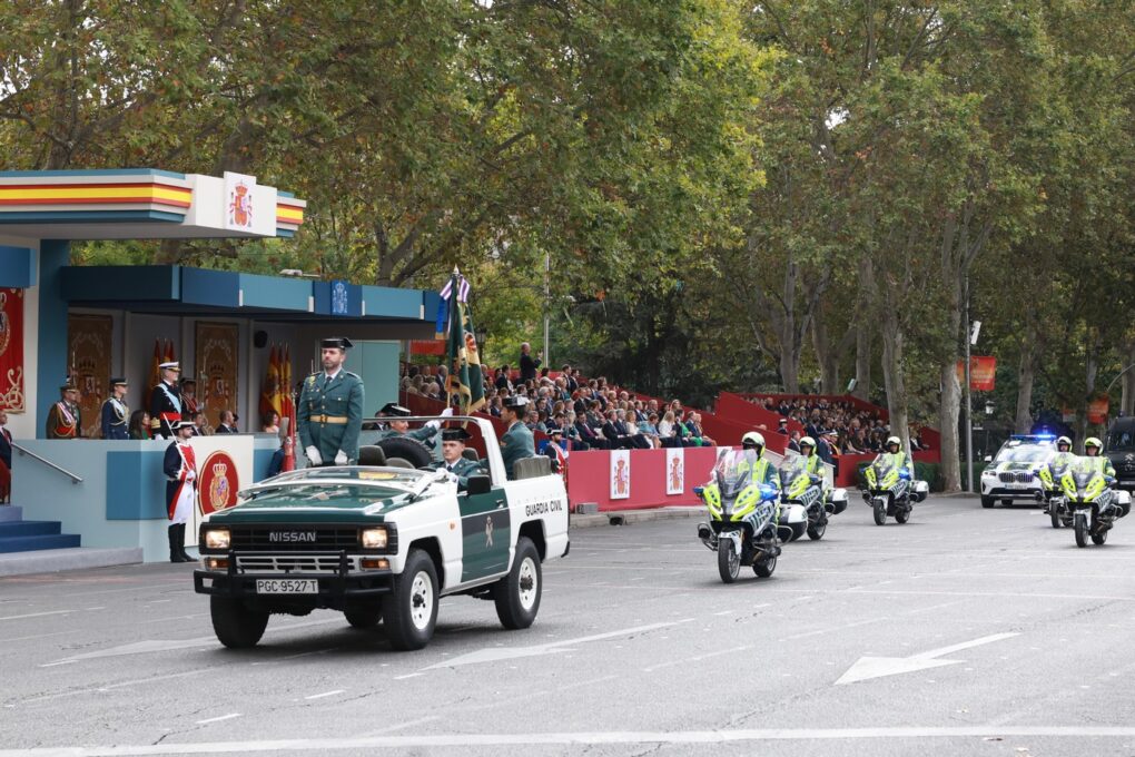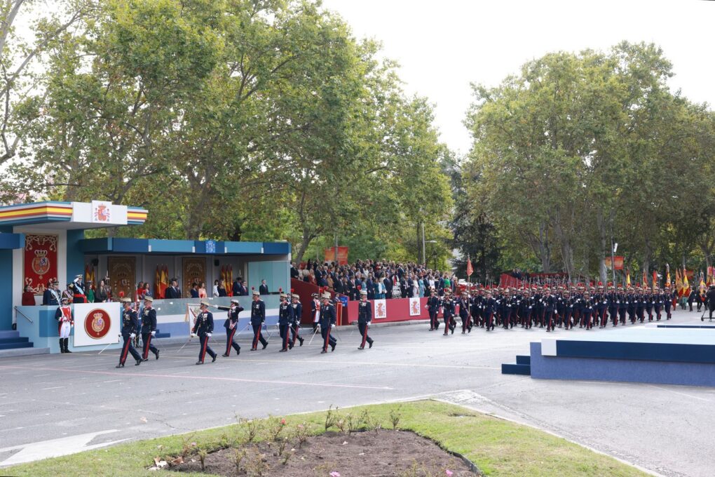 Finalizado el homenaje, se desarrolló el desfile aéreo y terrestre con la participación de unidades de los Ejércitos, la Armada, la Guardia Civil, la Unidad Militar de Emergencias, la Guardia Real, las Fuerzas y Cuerpos de Seguridad del Estado y diversos organismos de Seguridad, Protección Civil y Emergencias. El desfile concluyó con un nuevo sobrevuelo de la formación “Mirlo”, cerrando así la parada militar.