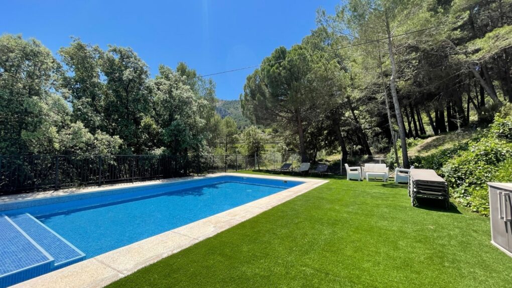 Es una encantadora casa rural de alquiler íntegro, ideal para familias o grupos grandes (10-16 personas), ubicada en el espectacular Valle de Guadalest, Alicante. El alojamiento destaca por su ubicación en plena naturaleza montañosa, ofreciendo un entorno perfecto para el relax, el senderismo y el bienestar. Dispone de cómodas instalaciones, 270 m² incluyendo 7 habitaciones suites con baño privado, piscina y chimenea. Es un espacio pet-friendly con un emplazamiento estratégico que te permite combinar la tranquilidad de la montaña con la cercanía a playas y a la rica oferta cultural de la Marina Baixa.
