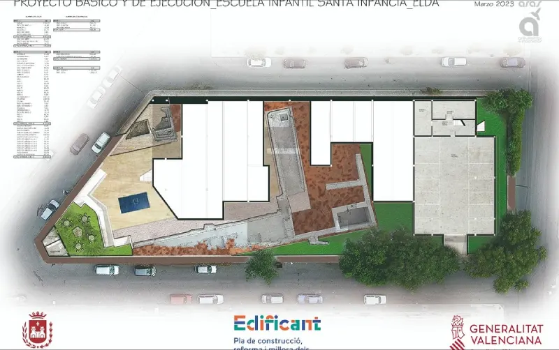 La Junta de Gobierno Local del Ayuntamiento de Elda ha aprobado el proyecto definitivo para la construcción de la nueva Escuela Infantil Santa Infancia, una obra enmarcada dentro del Plan Edificant que, según se destaca en el comunicado municipal, sufrió una «parálisis considerable» tras la llegada del Partido Popular (PP) a la Generalitat Valenciana.
