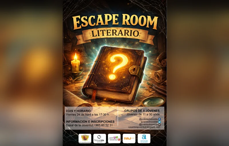 NOVELDA – Con motivo de la celebración del Día Internacional del Libro, la Concejalía de Juventud del Ayuntamiento de Novelda ha organizado una propuesta lúdica y cultural que busca acercar la literatura a las nuevas generaciones desde una perspectiva dinámica: un Taller de Escape Room Literario.