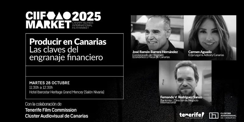 El Canary Islands International Film Market (CIIF Market) celebrará el próximo martes 28 de octubre, en el Hotel Iberostar Heritage Grand Mencey (Salón Nivaria), dos sesiones clave dedicadas a analizar los pilares que impulsan el crecimiento del audiovisual en Canarias: su entorno financiero y fiscal, y su capacidad de coproducción internacional.