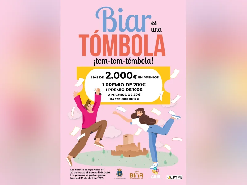 Biar, 23 de marzo de 2026 — Comprar en el comercio de proximidad vuelve a tener recompensa en Biar. Bajo el lema «Biar es una Tómbola», el municipio arranca una ambiciosa campaña de dinamización comercial que busca premiar la fidelidad de los vecinos y potenciar el consumo en los establecimientos locales durante la primavera.