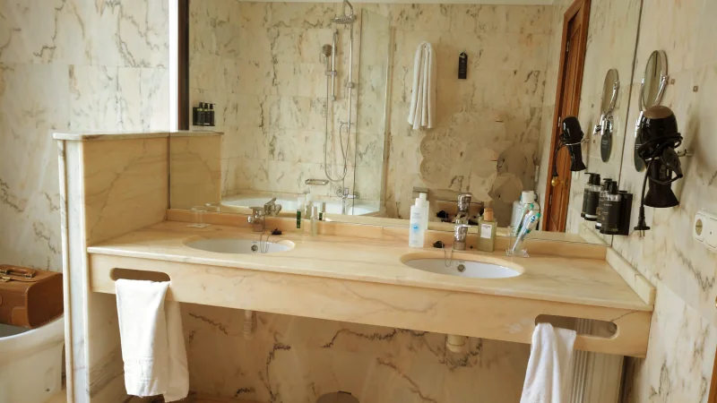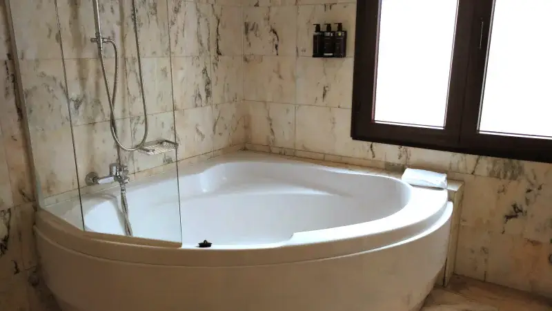 El Santuario del Baño: Un pasillo de entrada señorial que conducía a un aseo equipado con un jacuzzi, un auténtico templo del relax que no esperas encontrar en un hotel de esta categoría.