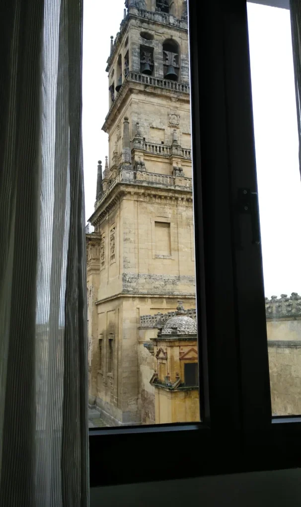 Vistas Históricas: Todo esto coronado por una ventana desde la que la Mezquita de Córdoba se alzaba tan imponente y cercana que sentía que podía acariciar sus arcos con solo estirar la mano.