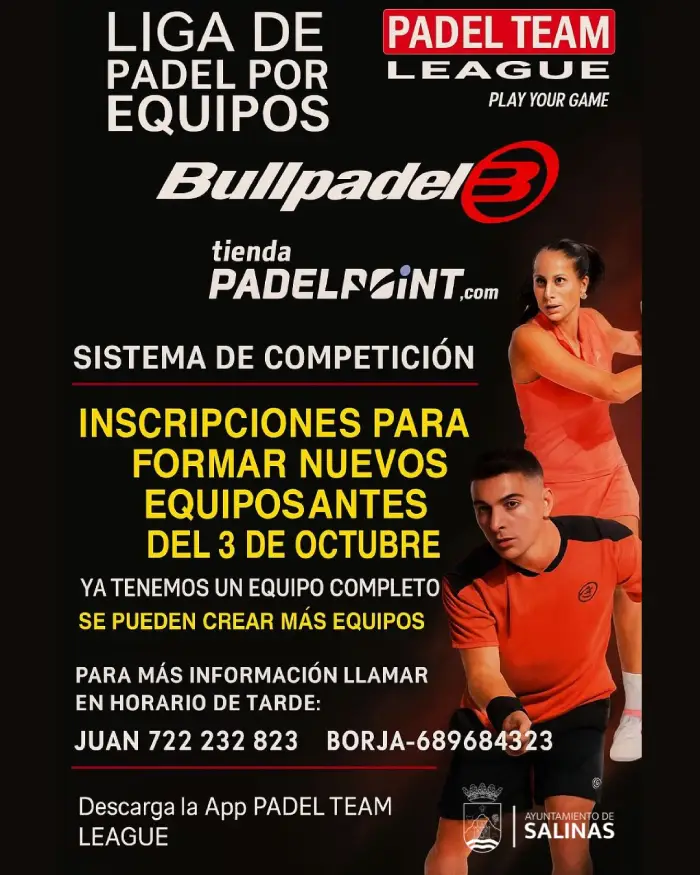 Si eres un apasionado del pádel y te gusta la competición, el ayuntamiento de Salinas tiene una propuesta para ti. Ha lanzado la convocatoria para la «Pádel Team League», un torneo por equipos diseñado para llevar la emoción del pádel a un nuevo nivel.