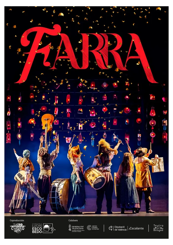 Bajo la dirección de Lucas Escobedo, «Farra» es mucho más que una representación teatral; es una reivindicación de la alegría, el disfrute y el derecho a la comunidad y la cultura frente a la hiperactividad y la velocidad del mundo actual. El espectáculo conjuga el verso de grandes autores del Siglo de Oro como Lope de Vega, Quevedo, Miguel de Cervantes, María de Zaya o Sor Juana Inés de la Cruz, con textos originales de María Díaz, Lucas Escobedo y Raquel Molano, todo ello arropado por la música barroca y el más elegante circo.