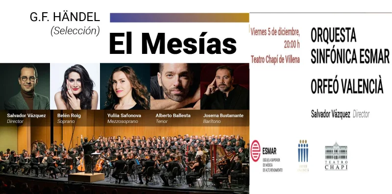 El Teatro Chapí de Villena se prepara para una fecha histórica: el próximo viernes 5 de diciembre conmemorará el centenario de su inauguración (5 de diciembre de 1925) con un evento a la altura de su legado. Para celebrar un siglo de dedicación a la cultura y el arte, el emblemático espacio ha programado la interpretación de una selección de «El Mesías» de Georg Friedrich Händel, una obra musical que, al igual que el propio teatro, ha sabido trascender el tiempo.
