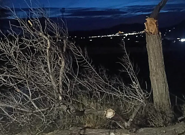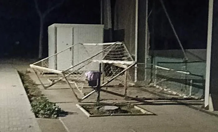 El incidente más grave se ha producido en el Campo de la Solana, donde una de las torres de focos —concretamente la ubicada junto a la entrada del pabellón— no ha resistido la fuerza del viento. La estructura se ha desplomado, golpeando directamente el techo del pabellón municipal y provocando daños de diversa consideración en la techumbre.