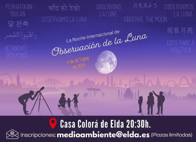La Concejalía de Medio Ambiente, en colaboración con la Asociación de Amigos de la Astronomía de Elda, se suma a la celebración de la Noche Internacional de Observación de la Luna con una actividad gratuita que tendrá lugar el próximo sábado 4 de octubre en la Casa Colorá.