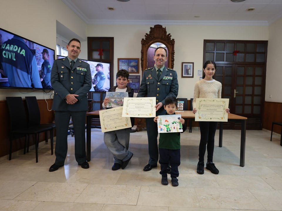 Durante el día de ayer, la Guardia Civil de Alicante celebró el acto de entrega de premios a los tres ganadores de la última edición de su tradicional concurso de dibujo infantil, convocado en las vísperas de la Navidad desde la Comandancia por undécimo año consecutivo.