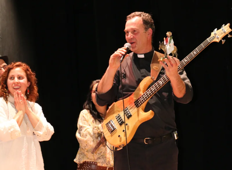 S: (Risas) ¡Ahí reside el truco! Don Eduardo, nuestro bajista, lleva el alzacuellos; Ismael (voz y percusión) se gana el pan con la madera y la obra; Ivana es técnica en anatomía patológica… Cada uno viene de un mundo: nutrición, teología, educación física. Ver a un sacerdote con un bajo eléctrico choca al principio, lo entendemos, pero para nosotros es el reflejo de la vida misma. Dios aparece entre el serrín, en el hospital o en el aula. Somos una familia que usa lo que sabe hacer para construir algo más grande.