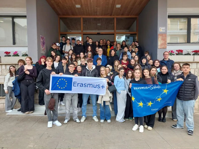 El alcalde de Ibi, Sergio Carrasco, junto a otros miembros de la Corporación Municipal, fue el encargado de dar la bienvenida oficial al numeroso grupo y a sus profesores acompañantes. Durante el acto, se destacó la importancia de estos programas para «tender puentes» entre jóvenes de diferentes nacionalidades.