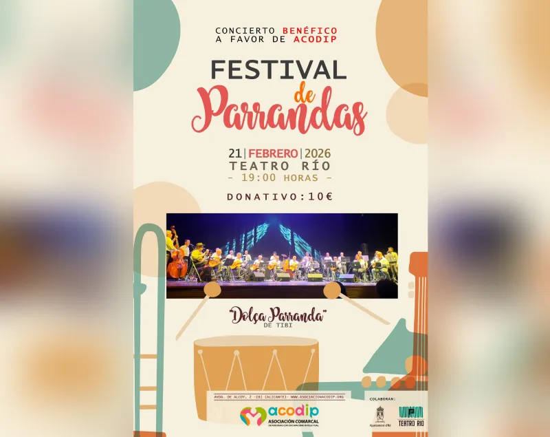 IBI – La música tradicional y la solidaridad volverán a darse la mano en el corazón de la Villa del Juguete. El próximo sábado 21 de febrero, el Teatro Río de Ibi se convertirá en el escenario de una nueva edición del Festival de Parrandas, un evento que ya se ha consolidado como una cita imprescindible en el calendario cultural y social de la localidad.