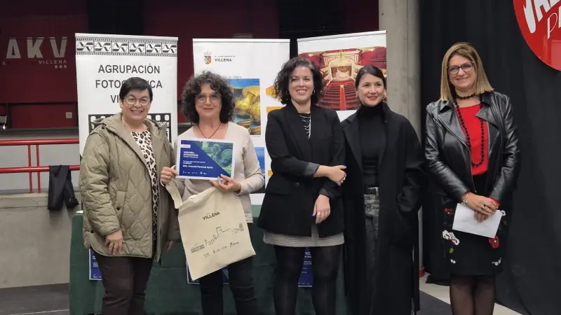El acto de inauguración incluyó la solemne entrega de premios, presidida por la concejala de Turismo, Paula García, y representantes de la Agrupación Fotográfica Villena (AFV).