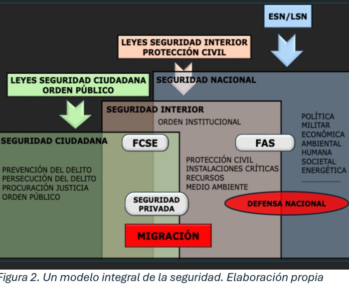 Así pues, analizar la migración en lo que se refiere a su impacto en la seguridad, supone la necesidad de abordar el problema desde un modelo integrado de seguridad en el que se solapen sus tres componentes fundamentales: seguridad ciudadana, interior y nacional. La primera tiene por objeto la protección de las personas en base a un desarrollo normativo que garantice el orden público, siendo su marco de referencia los derechos humanos. En este sentido, la población migrante adquiere su condición de ciudadano, asumiendo los mismos derechos y deberes que la población autóctona. El segundo componente es la seguridad interior, la que al fin y a la postre se materializa en el orden institucional, y en el caso de la migración se fundamenta en el respeto al Estado de derecho, garantía de la soberanía nacional y del bienestar de los ciudadanos, lo que obliga al ejercer el necesario control para evitar, o al menos mitigar los efectos de la radicalización y de los extremismos. La seguridad nacional constituye el tercer elemento a considerar, la cual desde un punto de vista académico podría definirse como la capacidad del Estado para identificar, prevenir y neutralizar las amenazas que puedan afectar a sus intereses fundamentales mediante la movilización integrada de todos los recursos del poder nacional. Se refiere, por tanto, a la capacidad del Estado para salvaguardar su soberanía, su integridad territorial y la estabilidad de sus estructuras estratégicas frente a dinámicas que, por su magnitud o instrumentalización, puedan afectar a sus intereses fundamentales, entre las que se encuentra la migración sin el debido control.