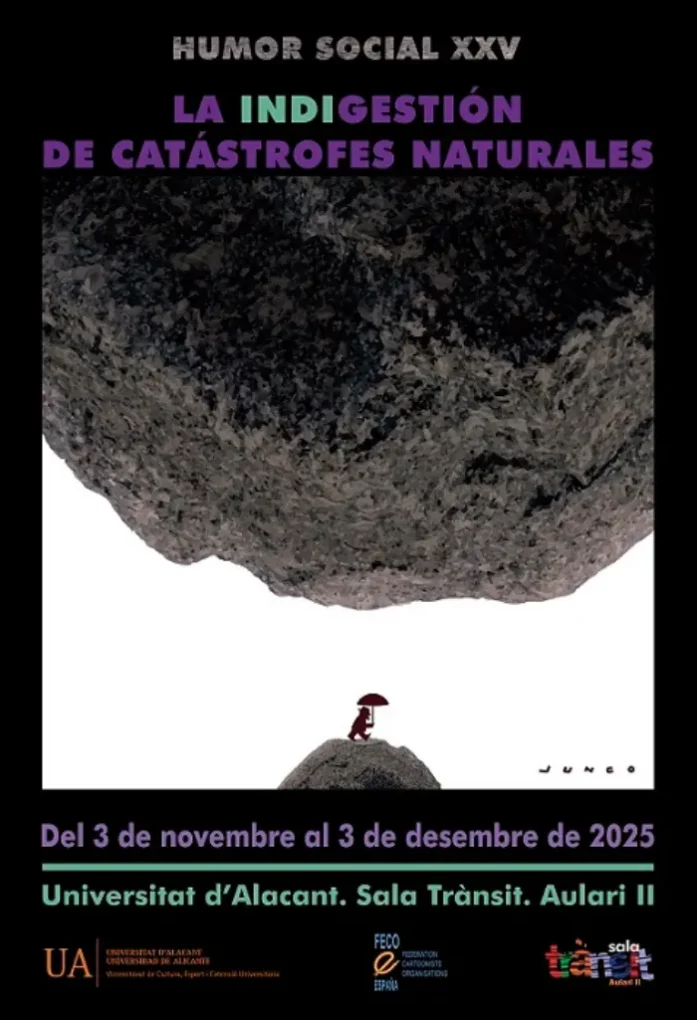 La Muestra de Humor Social de la Universidad de Alicante (UA), un proyecto que ha marcado un hito en el humor gráfico como denuncia social durante un cuarto de siglo, inaugura hoy su edición de cierre. La exposición conmemorativa de este 25 aniversario lleva por título «La indigestión de las catástrofes naturales» y estará abierta al público en la Sala Trànsit del Aulario II hasta el 3 de diciembre.