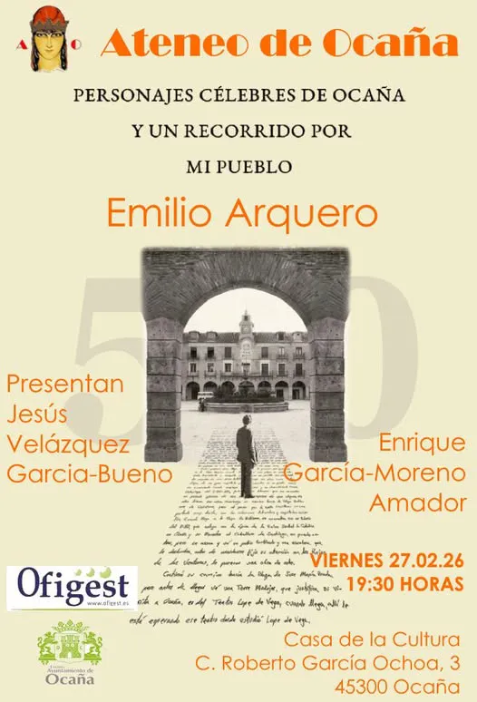 OCAÑA – El próximo viernes 27 de febrero, la localidad de Ocaña tiene una cita ineludible con su memoria histórica. A las 19:30 horas, la Casa de la Cultura (Calle Roberto García Ochoa, 3) abrirá sus puertas para la presentación oficial del libro «Personajes célebres de Ocaña y un recorrido por mi pueblo», la última obra del autor y docente Emilio Arquero. Organizado por el Ateneo de Ocaña.