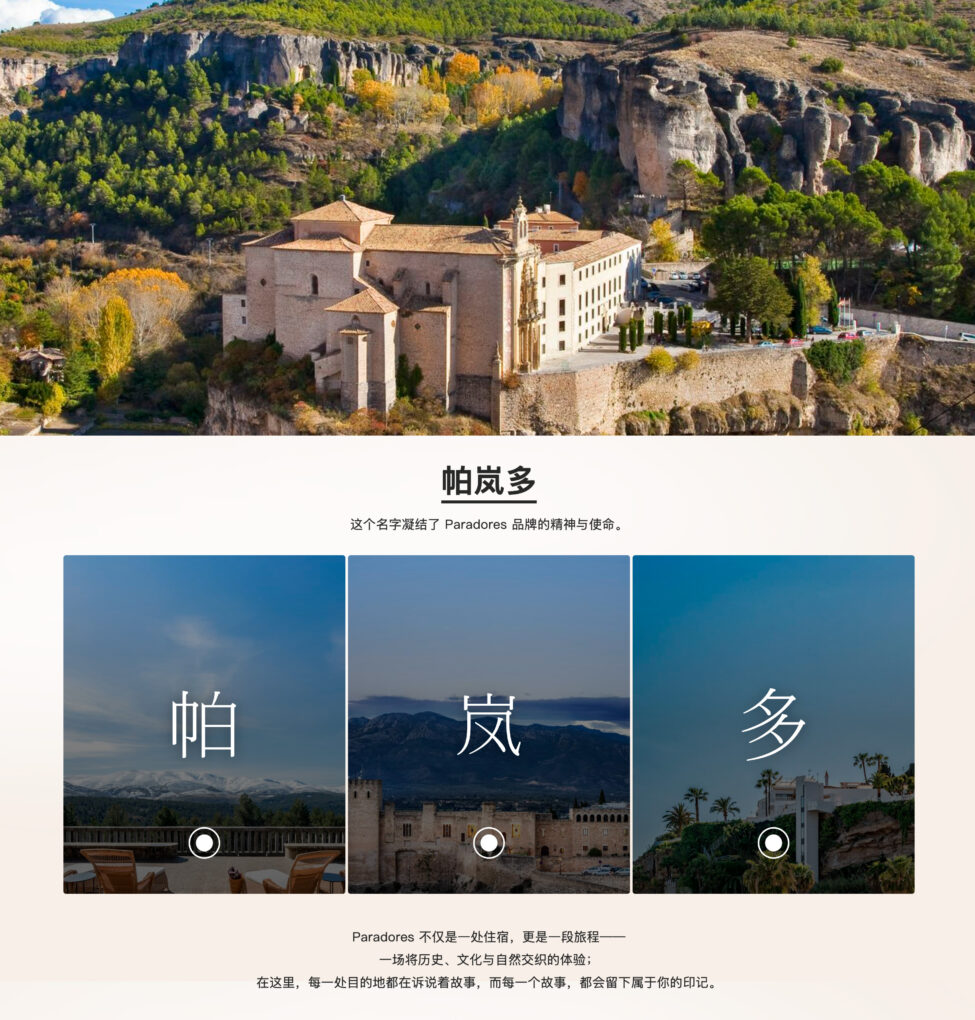Fruto de este proceso nace la marca Paradores – Palanduo (帕岚多, pà lán duō), una adaptación que mantiene una alta similitud fonética con el nombre original y que, a través de sus caracteres, busca transmitir los valores de hospitalidad, serenidad y conexión con el entorno que definen la experiencia Paradores. Esta adaptación refuerza la identidad de la marca en China, facilitando su reconocimiento y cercanía entre el público local.