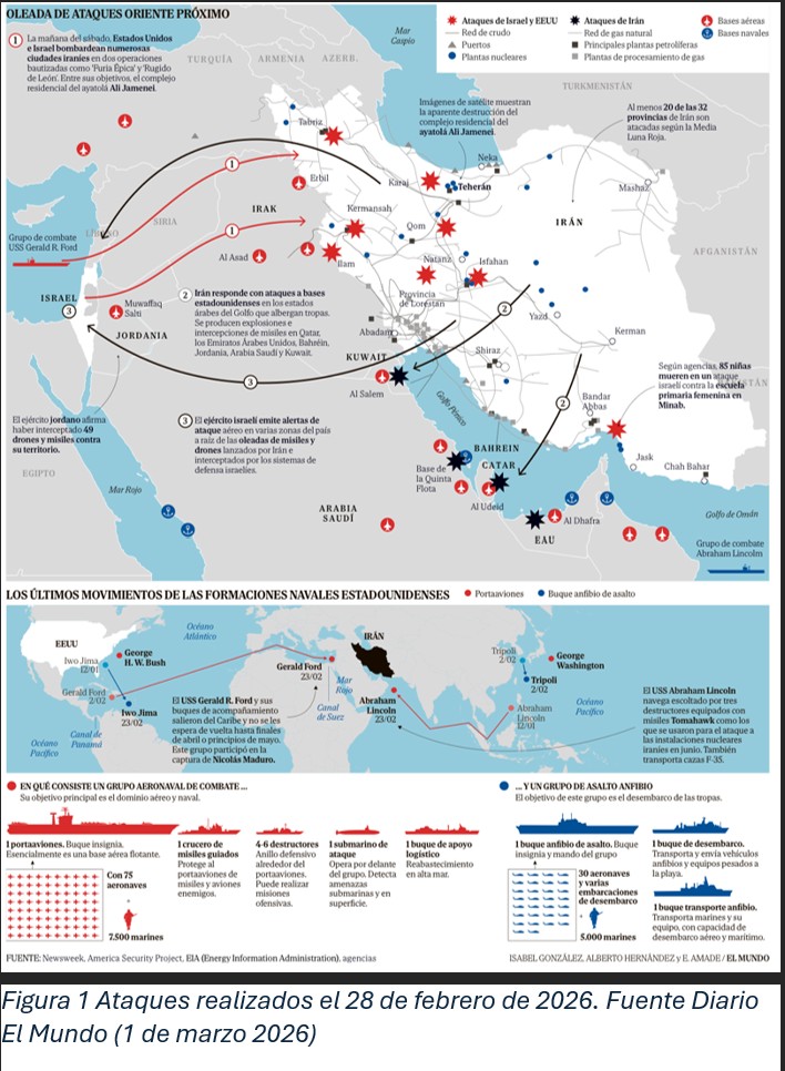 Abordar un problema tan complejo en sus inicios, cuándo la información se encuentra en franca desventaja frente a la especulación, requiere unas buenas dosis de prudencia, algo que voy a tratar que impere en mis palabras. Una primera valoración tiene que ver con la sorpresa, pues a pesar del despliegue preventivo que Estados Unidos realizó en las semanas previas en el Mediterráneo y en el Índico, el ataque lanzado sobre Irán ha causado no poca conmoción, máxime cuando Washington y Teherán se encontraban en negociaciones para rebajar la tensión en la región.