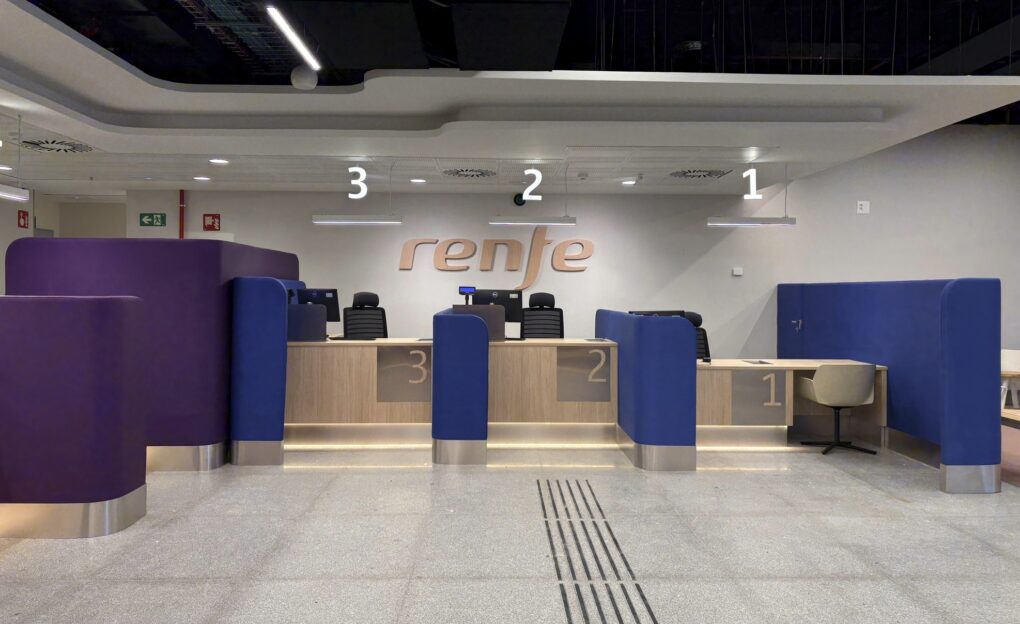 Además, el Espacio Renfe incorpora áreas destinadas a ofrecer una atención más personalizada, con el fin de garantizar la privacidad y la cercanía en la relación con el cliente, en consonancia con los estándares de calidad de la compañía. El diseño de cada elemento se orienta al cliente para mejorar su experiencia y facilitar su paso por la estación.