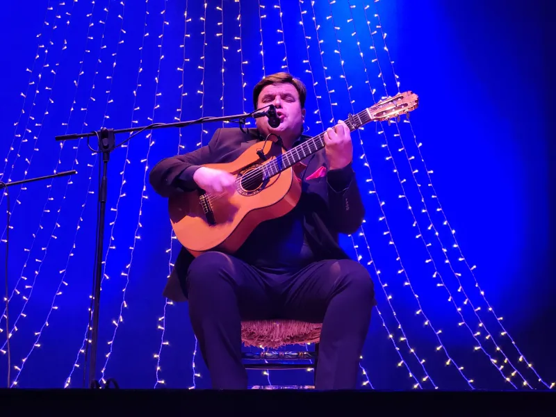 El repertorio fue un viaje equilibrado entre la tradición y la creación propia. El cantaor transitó con maestría desde los villancicos jerezanos, como el emblemático ‘Patriarca Manuel’ de Fernando Terremoto, hasta palos más clásicos como las alegrías y bulerías, donde su destreza simultánea con la voz y la guitarra volvió a asombrar.