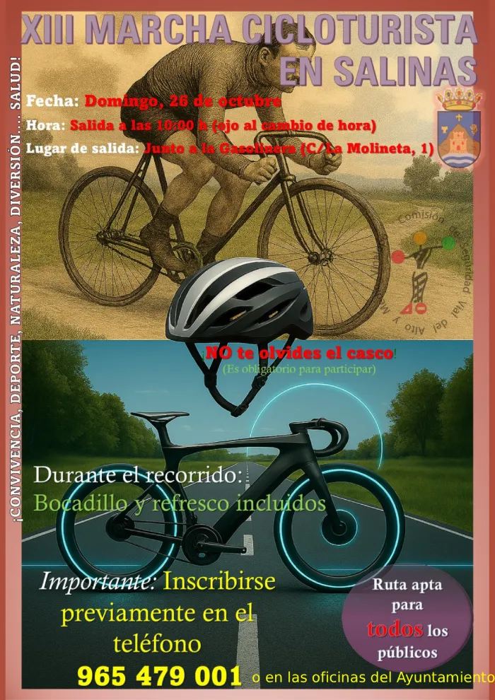 El próximo domingo 26 de octubre, la localidad de Salinas se vestirá de gala para celebrar la XIII Marcha Cicloturista, un evento deportivo y familiar que se ha consolidado como una tradición dentro del calendario local.