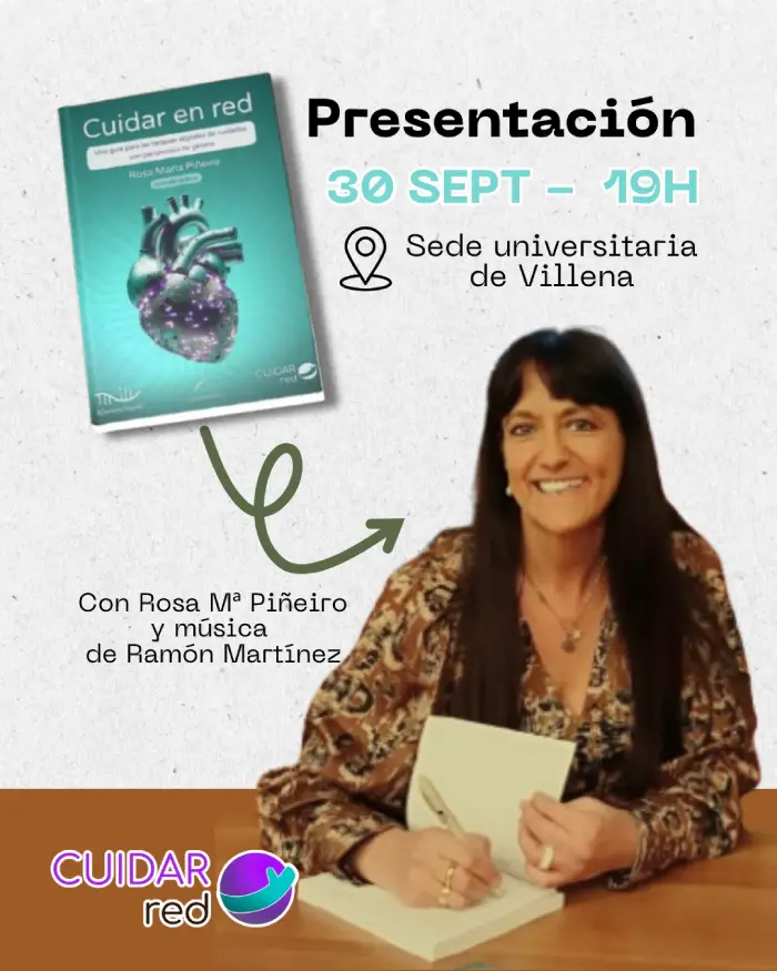 La Sede Universitaria de Villena organiza el próximo 30 de septiembre de 2025, a las 19:00h en la Sala Polivalente de la Tercia, la presentación del libro Cuidar en Red: Terapias Digitales en Cuidados con Perspectiva de Género, una obra pionera que explora cómo las tecnologías digitales pueden transformar los modelos de cuidado cuando se aplican desde una mirada comunitaria y sensible a las desigualdades de género.