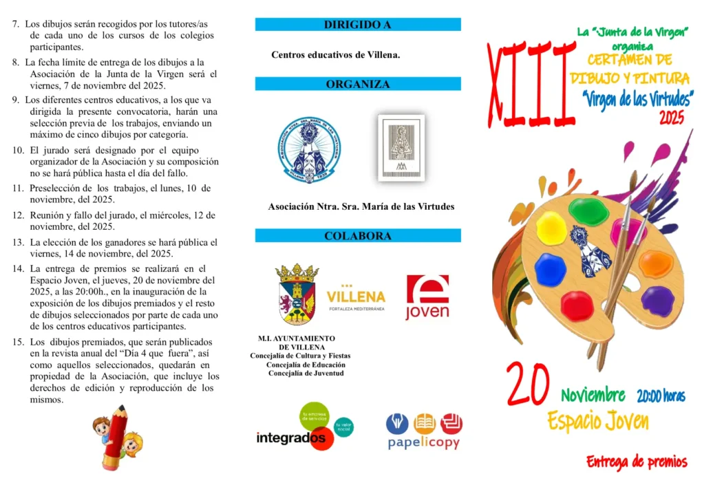 - Recogida de dibujos: Los trabajos podrán entregarse en los centros escolares hasta el viernes 7 de noviembre.